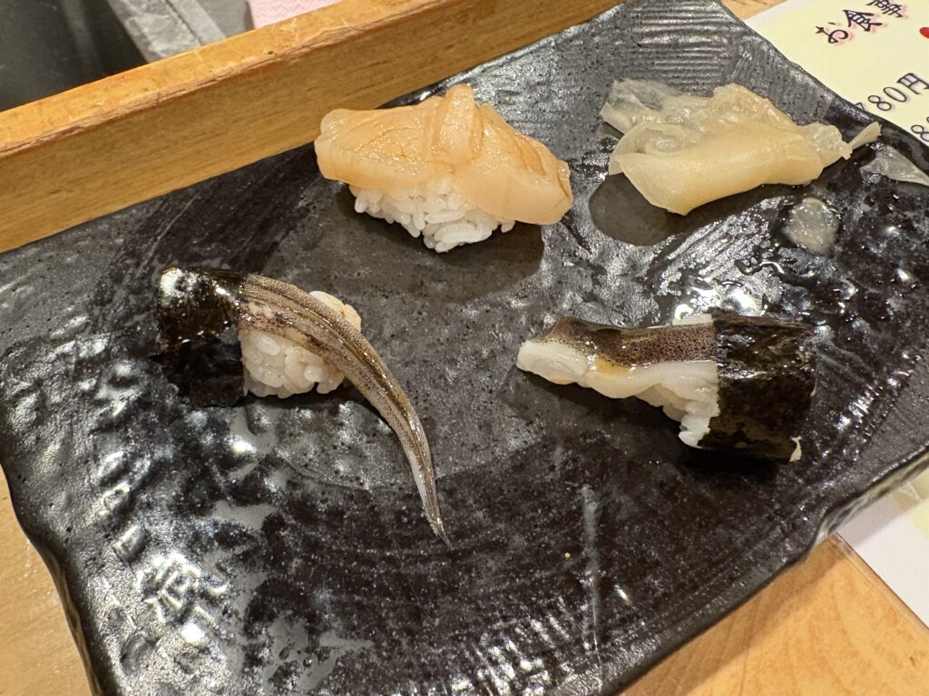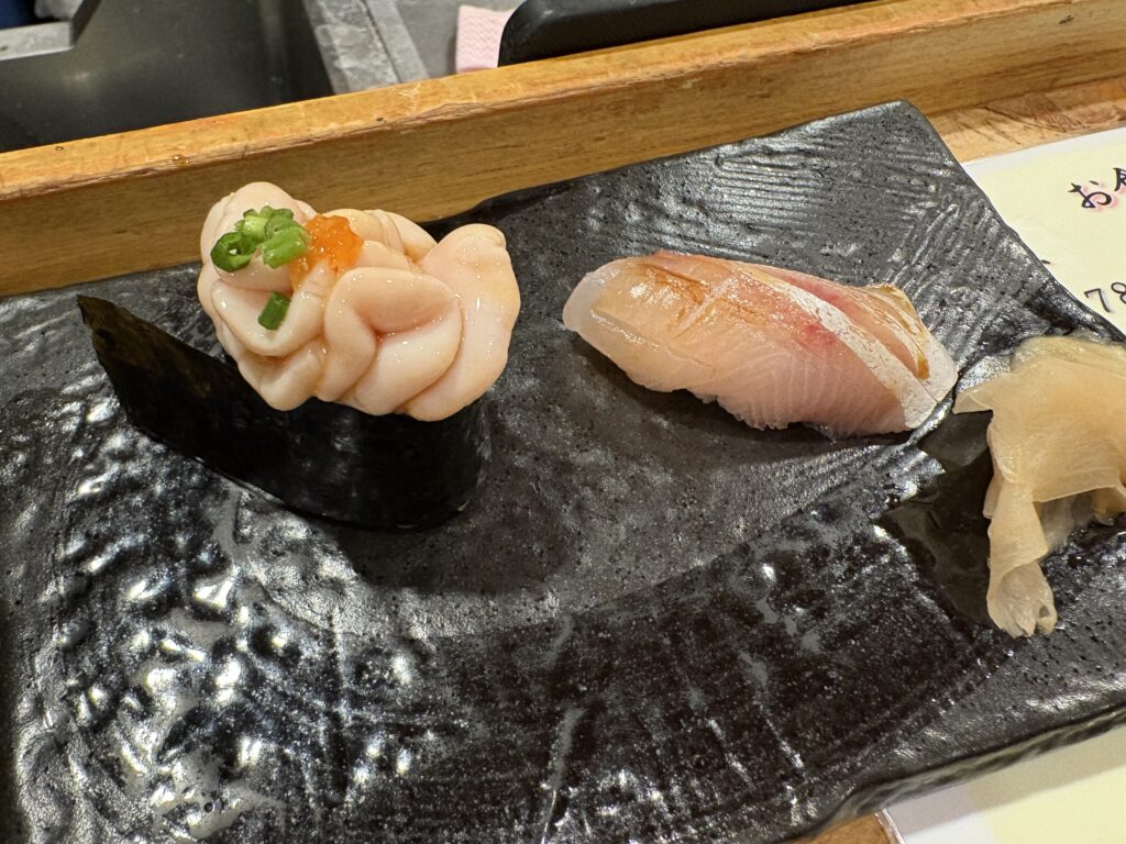 ゲソはウマいが小ぶり、帆立も悪くはないがネタが微妙な大きさ。