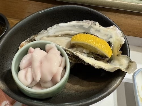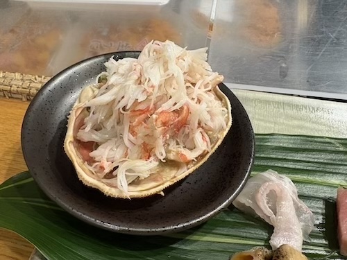 刺身から始まり、あん肝、ほぼ生と言えるレベルの白子、生牡蠣、カニのほぐし身。